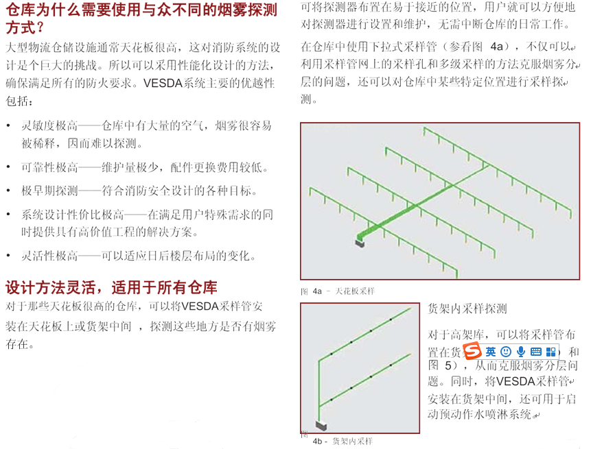 VESDA极早期烟雾探测预警系统针对数据中心和通讯机房火灾防范特点,具备了灵敏度高(0.005%至20% obs/m)、 发现火情早.适用于高大空间的探测、维护量极小等特点,在火灾发生早期阴燃阶段就能发现火情,成为了数据中心 和通讯机房防范火灾的最佳选择。