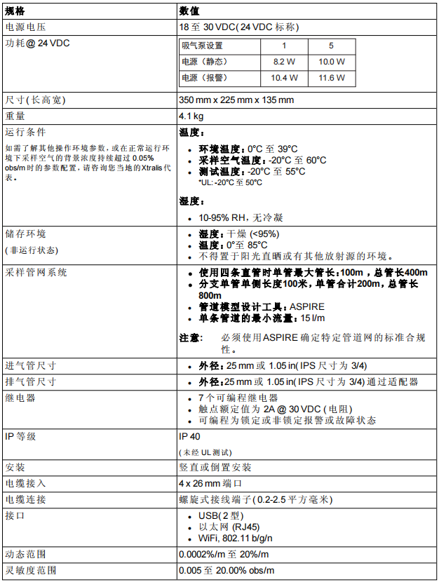 • 主要用于工业用途。吸气式探测器的二次监视及维护需要连接WiFi
